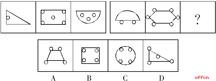 4.从所给的四个选项中,选择最合适的一个填入问号处,使之呈现一定的规律性: