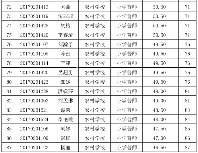2017下半年湖南娄底冷水江市招聘农村小学教师笔试成绩公示