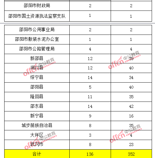 2016年湖南公务员考试公告已于3月10日在湖南民生网正式发布。考生可于2016年3月22日9:00至3月28日17:00进行报名,笔试时间定于4月23日。2016年邵阳(地区)共招录352人,较去年减少22人。