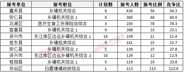 一、郴州公务员报名人数:各职位分析