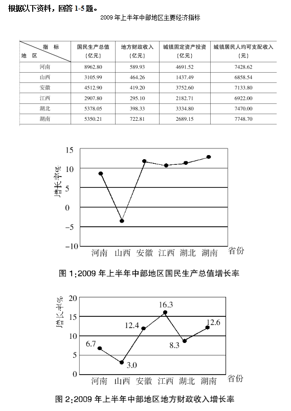 1.2009年上半年,江西国民生产总值增长率在中部地区排名第几?