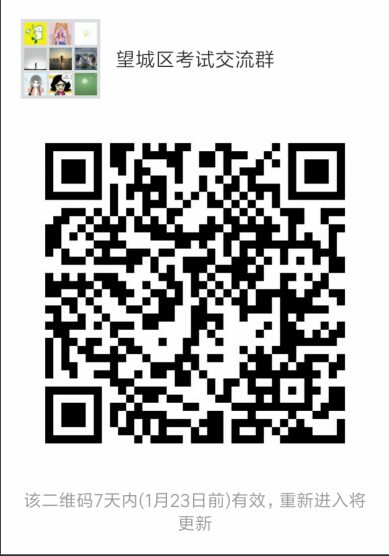 推荐:寻找考试小伙伴;扫二维码加入微信群(本群是为了方便考生及时获取《2018湖南长沙市望城区公开招聘初级政府雇员41人(第一批次)公告》、《2017湖南长沙市望城区公开招聘事业单位17人公告》、《 2018湖南现代物流职业技术学院招聘40名公告 》考试资讯及考生之间相互沟通)