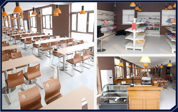 宽敞洁净的就餐环境,规律有序的就餐时间,自助式就餐方式,八菜两汤,营养搭配,让你享受舒心的学习。